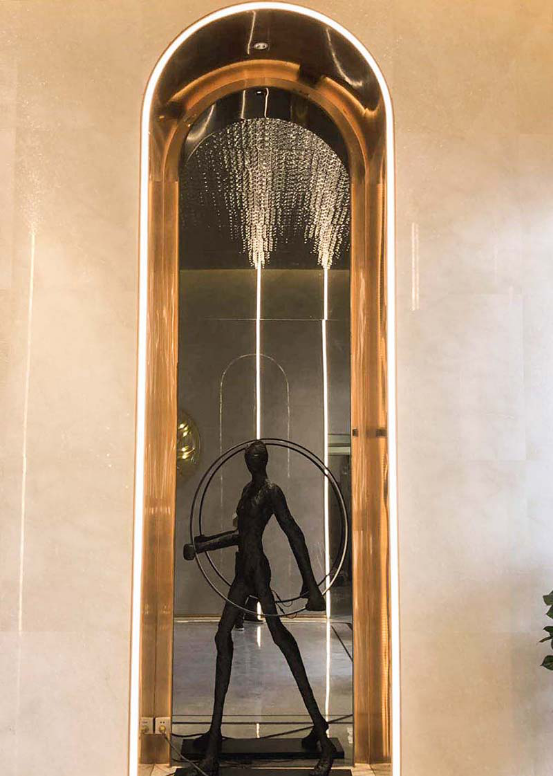 藝術(shù)生門洞邊緣,內(nèi)部安裝燈帶,表面采用的是白色亞克力,燈光效果佳。
